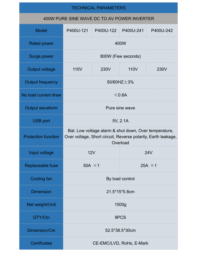 400 ਡਬਲਯੂ ਦੇ ਸ਼ੁੱਧ ਸਿਨ ਵੇਵ ਡੀਸੀ ਨੂੰ ਏਸੀ ਪਾਵਰ ਇਨਵਰਟਰ