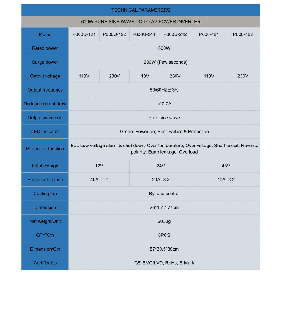 ਏਸੀ ਪਾਵਰ ਇਨਵਰਟਰ ਨੂੰ 600 ਡਬਲਯੂ ਸ਼ੁੱਧ ਸਿਨ ਵੇਵ ਡੀਸੀ